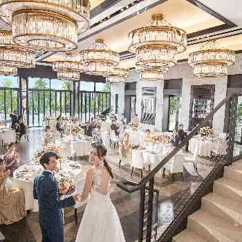 洗練されたデザインが印象的な2つの披露宴会場は、開放感溢れる上質空間。憧れのガーデン入場や階段入場も叶います。