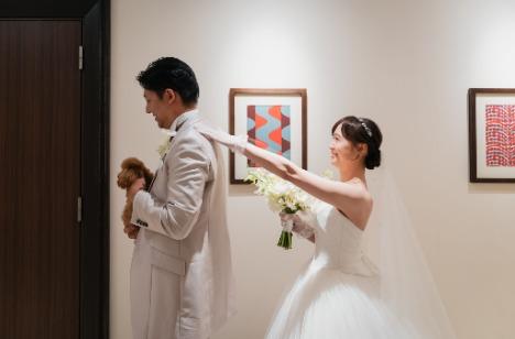 家族と親しい友人のみで【家族との温かい時間】がテーマ 人数も多くはなかったので、一人ひとりのゲストとお話しをしたり写真を撮ったりゆったりとお食事を楽しみました。 また家族として、愛犬も結婚式の一日を一緒に過ごしました。 リングドッグやファーストミートをワンちゃんと一緒にしたり披露宴会場も一緒に過ごすことができたので、お写真を残したりと参加できたのは嬉しかったです。