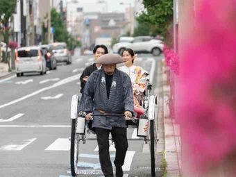 三島の街並みに映える和装での移動演出