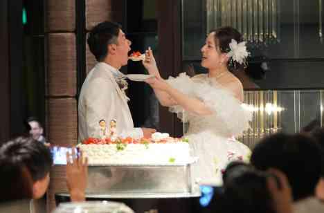 披露宴は上質で落ち着いた雰囲気が魅力の会場「ルナール」。 おふたりのケーキは、ミニチュアのおふたりが乗った世界に一つだけのオリジナルデザイン。愛らしいケーキにゲストの皆様も思わず笑顔に。ケーキ入刀後には、仲睦まじいファーストバイトに続いて、ご両親へのサンクスバイトを。今までの感謝の気持ちを“美味しさ”とともに届けるこの演出に、会場からはあたたかな拍手が送られ、とても感動的なシーンとなりました。