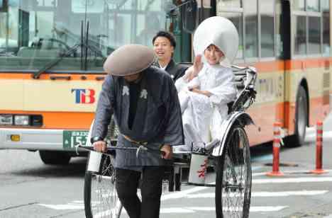 三嶋大社へ風情ある人力車で出発