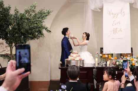 披露宴の舞台は、ナチュラルで開放感のある会場「プロヴァンスの九月」。挙式後は、ウェディングドレスにお召し替えされた新婦様がやわらかな笑顔で登場され、会場は一気に華やかな雰囲気に。 そして、ゲストの注目を集めたのは、おふたりオリジナルデザインのウェディングケーキ。ファーストバイトはシャッターチャンス!世界にひとつだけのケーキが、皆様の心をあたたかくつないだ時間となりました。
