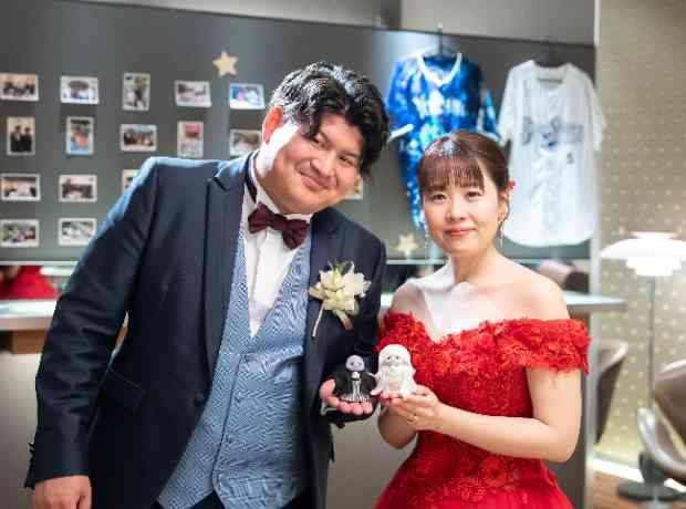披露宴では、三島の伝統「しゃぎり」の生演奏が登場。 力強い音が響く中、新郎様も演奏に加わり、会場は一気に盛り上がりました。 その後のお色直しでは、赤のドレスにチェンジして再登場。受付で行ったドレス色当てクイズの結果発表やビックスプーンでのファーストバイトなど、笑顔と歓声に包まれる時間が続きました。 伝統と華やかさ、そして地元の温もりが融合した、特別な一日となりました。