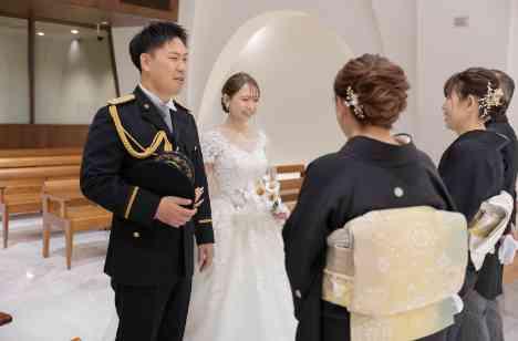挙式前に行われたファミリーミート。 扉が開いた瞬間、おふたりを見つめるご家族の目には涙と笑顔があふれていました。 これまでの思い出がよみがえり、「ありがとう」「おめでとう」の言葉が自然と交わされる温かな時間に。 お母様やお父様と過ごす短いひとときの中で、改めて家族の愛の深さを感じられたようでした。 感謝の気持ちを胸に、これからの人生を歩み出すスタートにふさわしい感動のシーンとなりました。
