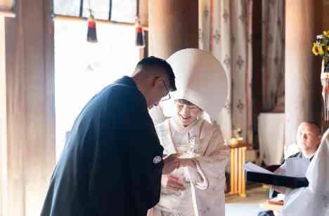 挙式当日は、白無垢姿の新婦様が人力車でホテルを出発。 沿道からは多くの方々が「おめでとう!」と声をかけ、通りには温かな拍手が響きました。 三嶋大社では厳かな雰囲気の中、家族とゲストに見守られながらの神前式。 神職の祝詞や雅楽の音色が響く中で、凛としたおふたりの姿がとても印象的でした。 古式ゆかしい挙式のあとには、自然と笑顔がこぼれる穏やかなひとときが流れました。