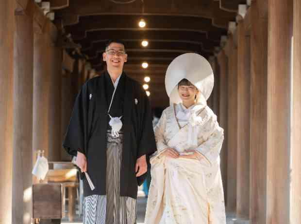 挙式当日は、白無垢姿の新婦様が人力車でホテルを出発。 沿道からは多くの方々が「おめでとう!」と声をかけ、通りには温かな拍手が響きました。 三嶋大社では厳かな雰囲気の中、家族とゲストに見守られながらの神前式。 神職の祝詞や雅楽の音色が響く中で、凛としたおふたりの姿がとても印象的でした。 古式ゆかしい挙式のあとには、自然と笑顔がこぼれる穏やかなひとときが流れました。
