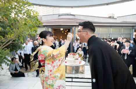 最初の入場は色鮮やかな色打掛姿で、ガーデンから登場! 乾杯直後にはフレアバーテンディングの演出があり、できあがったカクテルはご友人にプレゼントしました。 再入場では、受付で行った「再入場BGM当てクイズ」の答えがついに発表! ピンクのカラードレスで登場したおふたりに、会場は大盛り上がり。 正解発表の瞬間には歓声と笑顔があふれ、楽しい一体感に包まれた時間となりました。