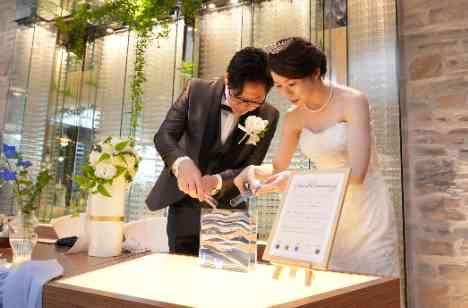 披露宴の演出として選ばれたのは、サンドセレモニー。 色の異なる砂をひとつの器に重ねていくこの演出には、 「これから先、さまざまな出来事があっても、ふたりで想いを重ねて歩んでいく」という意味が込められています。 完成したサンドアートは、世界にひとつだけの記念品。 結婚式当日の想いやゲストとのつながりを、これからの暮らしの中でも感じられる、心に残る演出となりました。