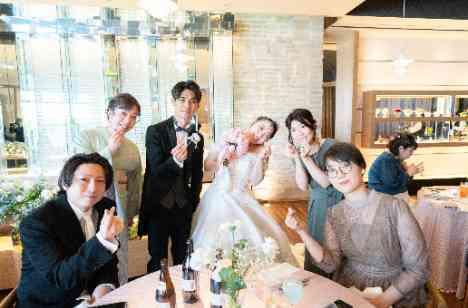 フォトラウンドでは、ポーズカードを使った参加型演出を取り入れました。 テーブルごとに指定されたポーズに、思わず笑顔がこぼれ、自然と会話も弾みます。 ただ写真を撮るだけでなく、ゲスト一人ひとりとしっかり交流できる時間となり、会場には終始あたたかな空気が流れていました。 「楽しかった」という声が自然と生まれる、おふたりらしいおもてなしのひとつです。