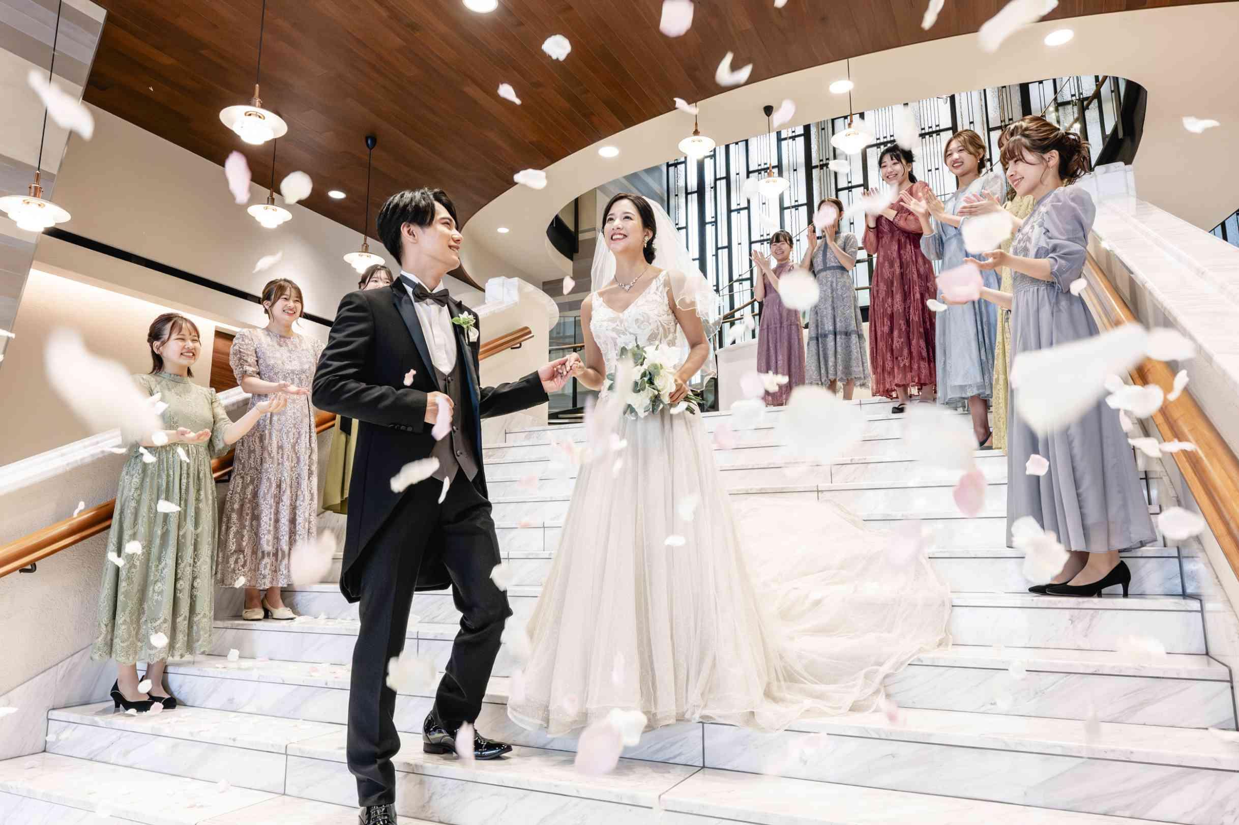 令和元年以降、三嶋大社での挙式お手伝い件数は毎年トップクラス。三嶋大社からホテルまでは徒歩わずか5分。挙式後はそのままゲストと一緒にスムーズに披露宴やご会食へ移動でき、負担が少なく喜ばれています。