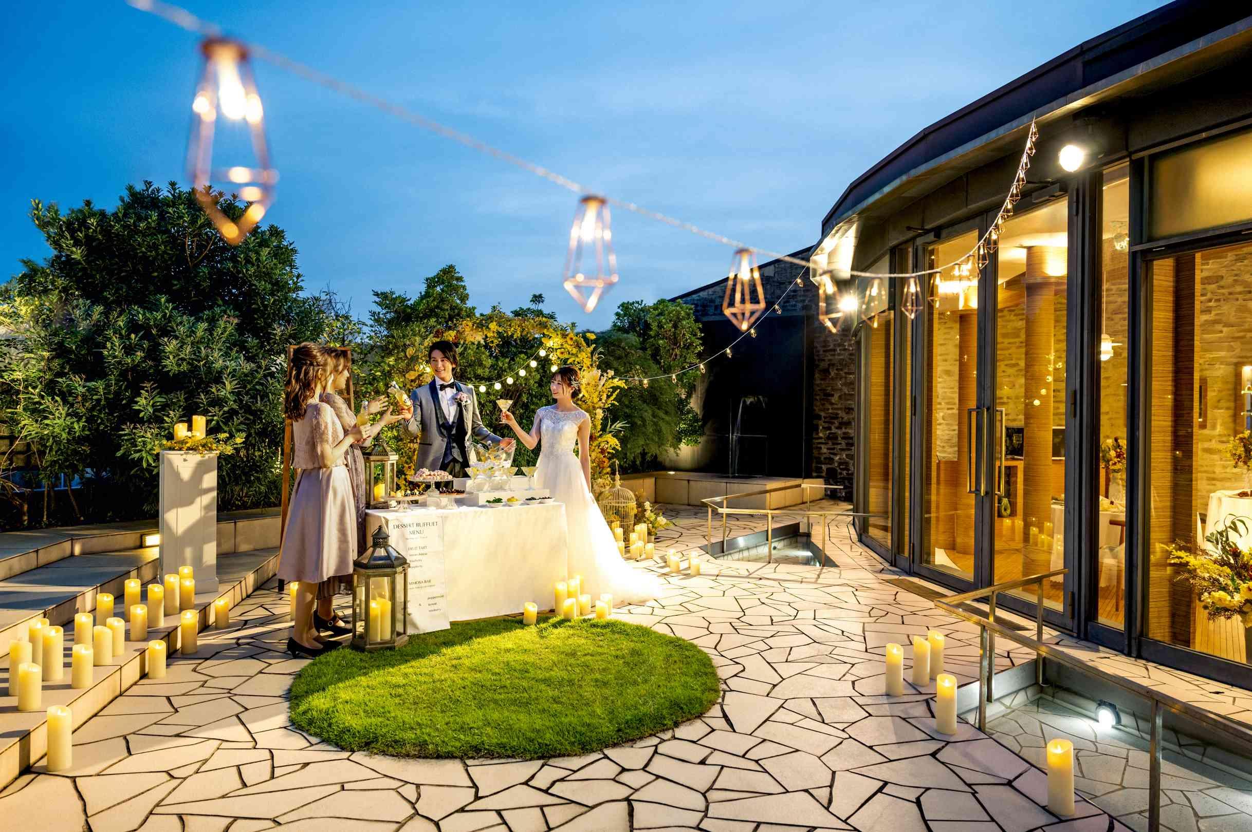 「オリエンタル・シンプルモダン」をテーマに仄かに光るムーンライトテーブル。唐草模様やブラック&ダークブラウンを基調にシンプルモダンな東洋風を表現。サプライズ入場やバーカウンターなどおもてなしも叶う。