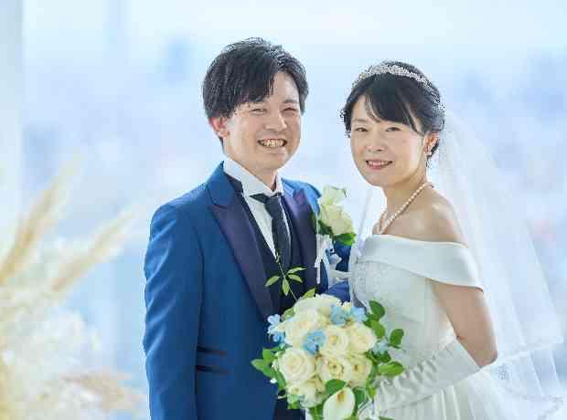 まずおふたりが決めたのはテーマカラー! おふたりのお話を聞いていく中で一番の思い出デートスポットは海。そして当会場をお選びいただいたご理由には空が近くにあるからとお答えのおふたり。 そのふたつ共通の青をテーマカラーにお選び、会場も衣装も青で統一にされました。当日のお花もどんな風になるかとても楽しみにしておりました!