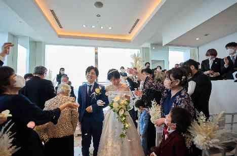 打合せの時から緊張してますとお話していたおふたり。やはり当日も緊張してる面持ちで挙式へと向かいました。 そんなおふたりの緊張をほぐしてくださったのはゲストの方からの祝福でした。祭壇から皆様のお顔を見ることができたことにより安堵した表情を見せてくださいました。これこそがアットホームウェディングだと感じられるお時間を見ることができ、スタッフも大変嬉しかったです。
