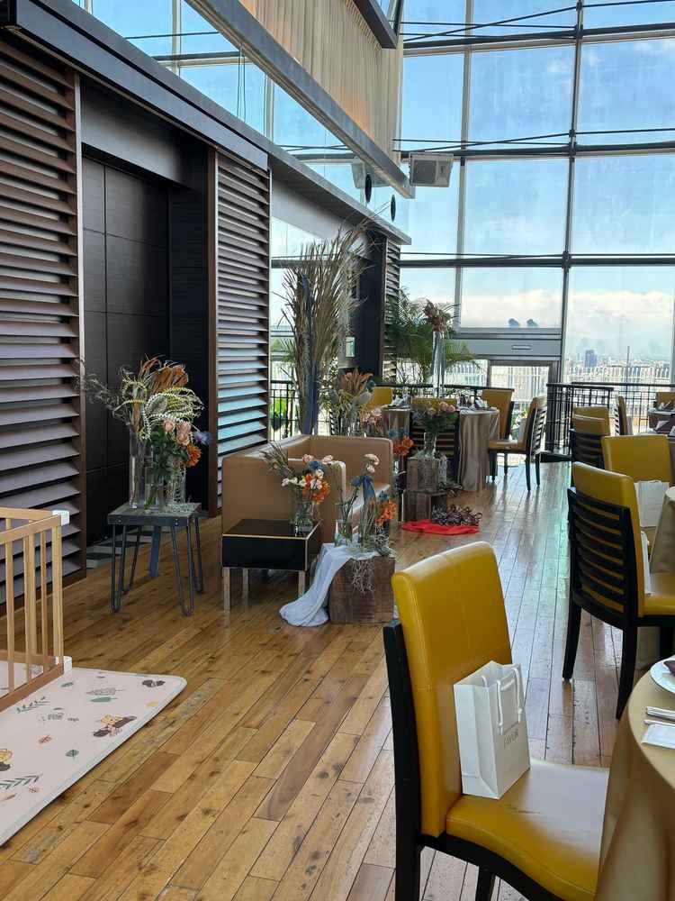 この度は当会場のブライダルフェアにお越しいただき誠にありがとうございました。 当会場は地上221mに位置しており、 2面両サイドには大きな窓ガラスがございますため東京の景色を一望していただける贅沢な空間が広がっております。 また天井高も13mございますため自然光がたっぷりと差し込みますので 開放的で心地よい雰囲気の中で一日をお過ごしいただくことが叶います。 お料理につきましてはモダンインターナショナルクイジーヌという 当会場オリジナルのジャンルでご用意をしております。 和のテイストを取り入れたフレンチで、日頃レストランで提供しているお料理とは ひと味違ったコース料理をお楽しみいただいております。 ゲストの皆様には、おふたりのご結婚式だからこそ味わえる 特別なコース料理を存分にお楽しみいただければと思います。 この度はご丁寧にアンケートのご回答をいただき誠にありがとうございました。