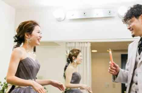 お色直しの入場の際は「ドレス色当てクイズ」を全員で参加できるようにペンライトを人数分ご用意!新郎様にも当日ファーストミート前にペンライトを選んでいただきます、いざ!カーテンOPEN♪「何でも似合うからな」と選ぶの大変そうでした!予想は外れてしまいましたがご新婦様のドレス姿に自然と笑顔がこぼれました!