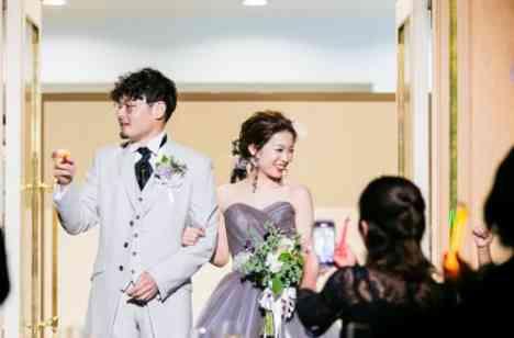 お色直しでカラードレスにお着替えされた新婦様 ドレスに合わせたブーケと一緒に再入場♪♪ お二人が会場に登場すると、「当たった」「似合うね」などゲストの声がたくさん聞こえ会場は大盛り上がり♪♪ さらにドレス色当てクイズの正解者による景品をかけた新郎様とのじゃんけん大会はとても白熱しておりました!!