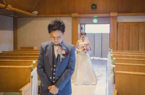 新婦様の衣装は結婚式当日までサプライズ! ウェディングドレス・カラードレス ファーストミートを行いました! 新婦様を待つ。この瞬間だけは いつも笑顔の新郎様もとても緊張されておりました! しかし、ドレス姿の新婦様を一目見た瞬間に いつも以上の笑顔があふれてましたね! 新婦様もサプライズ大成功!!