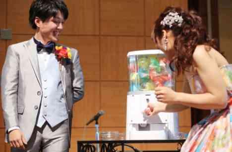 披露宴ポイントでも申し上げたようにアットホームな雰囲気の披露宴にしたいと考えていたため、 ゲストの皆様への感謝の気持ちを込めてガチャガチャを使ったプレゼントタイムをしました。 司会の方も上手に盛り上げてくれたためゲストの方からも「楽しかった!こんなのはじめて!」と感想をいただきました。