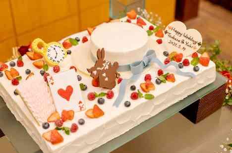 不思議の国のアリスが好きでケーキのデザインをこだわりました!受付にもトランプを並べたり、テーブルコーディネートは古書と電飾を飾って華やかにしたり♪おふたりのオリジナルを入れ込んで写真映えを重視!コロナ禍での結婚式を考えたときに、ゲストの皆さんがたくさん写真を撮って楽しめるように工夫しました!プチギフトは消毒グッズでそらえました!