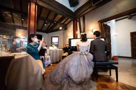 大学時代に新婦様が新郎様にピアノを教えたことがきっかけでお付き合いが始まったおふたり。結婚式に参列してくださったゲスト全員を自分達でおもてなしをしたいというお二人のご提案で新郎新婦様がピアノの演奏をされました。演奏された曲は「愛を込めて花束を」です。初めて新婦様が新郎様に教えた曲を仲よく並んで演奏されました。