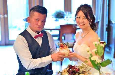 挙式に参列されたご友人から手作りリングピローをサプライズでプレゼントしていただいたお二人。 神社婚での指輪交換の際にもこちらのリングピローを使用されました。 披露宴中も想いのこもった大切なリングピローと記念のお写真撮影。