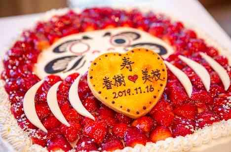 神社でご結婚式をされたお二人のウェディングケーキはもちろん和風のデザインです。【達磨のウェディングケーキ】をご用意されました。お二人の共同作業はケーキ入刀ではなく、達磨の目入れです。達磨の空いた片目にチョコペンを使ってお二人で目入れをしていただきました。とっても可愛くて縁起の良いウェディングケーキはゲストの皆様にも大変喜んでいただけました。