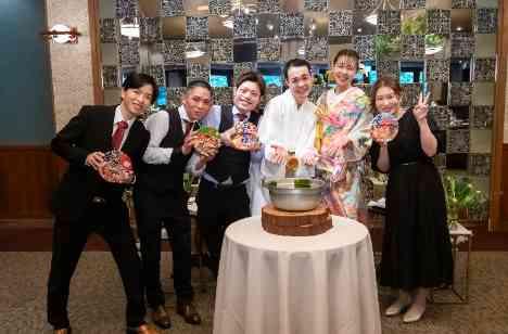 厳かな神前式では参進の儀で花嫁行列を行い神社の中へ。ご家族様、ご友人様皆様に見守られながら暖かい挙式となりました。 その後は披露宴へ 披露宴はカジュアルに おふたりの共同作業は... よくウェディングケーキはナイフで『入刀』をするのがよくあると思います おふたりはラーメンでしたのでスープを継ぎ足す『入湯』を行いました!