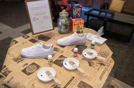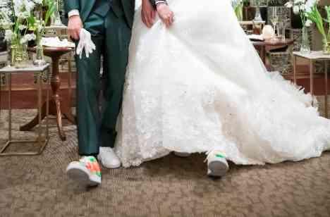 おふたりが初めてお会いした日、同じコンバースのシューズを履いていたそうです!! このお話を伺った時、私は『運命だ!』と驚いた記憶があります そんな出会いの思い出でもあるシューズを使用したイベントを用意したいと希望をいただきました。 ゲスト様にシューズペイントを行っていただきました! 世界に1つだけのシューズ&シューズBoxの完成です✨