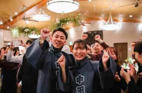 新郎様の幼い頃からご縁があった『浜松祭り』の余興 新郎様の地元の練り隊の皆様がいらっしゃってくださいました ゲストの皆様を巻き込んで祝い練りをしたりお祝いの記念品贈呈など・・・ 地元の皆様へ向けたおふたりからの愛と 地元の皆様からおふたりへ向けた愛を感じて素敵な瞬間でした 余興のみなさんもおふたりのご結婚式を盛り上げようと精一杯楽しんでくださいました^^