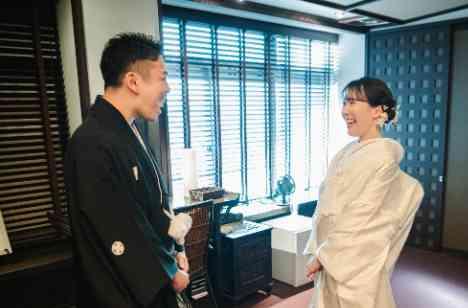 ご来館からお支度を進めている間 それぞれ別のお部屋にいらっしゃったおふたり お支度が整った状態で初めてお会いする『ファーストミート』の瞬間のお写真です お衣裳見学に一緒に行っていたので、衣裳をお互いに知っている状態で当日をお迎えいただきました。 お支度が全て整ったお姿で初めて対面した瞬間・・・ 少し緊張していた表情のおふたりですが いつものおふたりの120%の笑顔で最高の瞬間です!