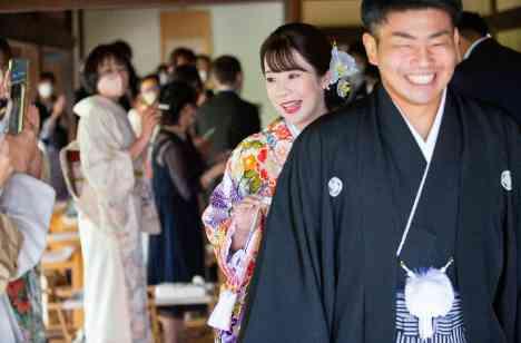 挙式は壮観な掛川城を背景に和やかな雰囲気の中、執り行われました。 挙式後のお菓子まきや記念撮影などゲストの方々も大変喜んでくれました。 掛川城での結婚式は少人数の列席者様を迎えるセレモニーに最適です。 特別な人々とともに掛川城内で挙式し、歴史的な建築物の中で愛を誓う瞬間は、まるで世界が二人だけの特別な場所になったかのような感覚を味わえます。
