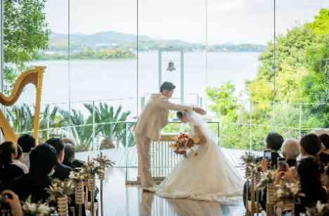 目の前に広がる、湖と空。刻々と表情を変える美しい風景に包まれ感動のセレモニーが叶う。ガラス張りの祭壇からは優しく差し込む自然光も新郎新婦を祝福してくれる。浜名湖エリア№1のチャペルで叶える絶景結婚式が人気。バージンロードの先には光り輝く暖かい日差しが二人を優しく照らす。ゲストの皆様にも大変好評を頂けるチャペル。