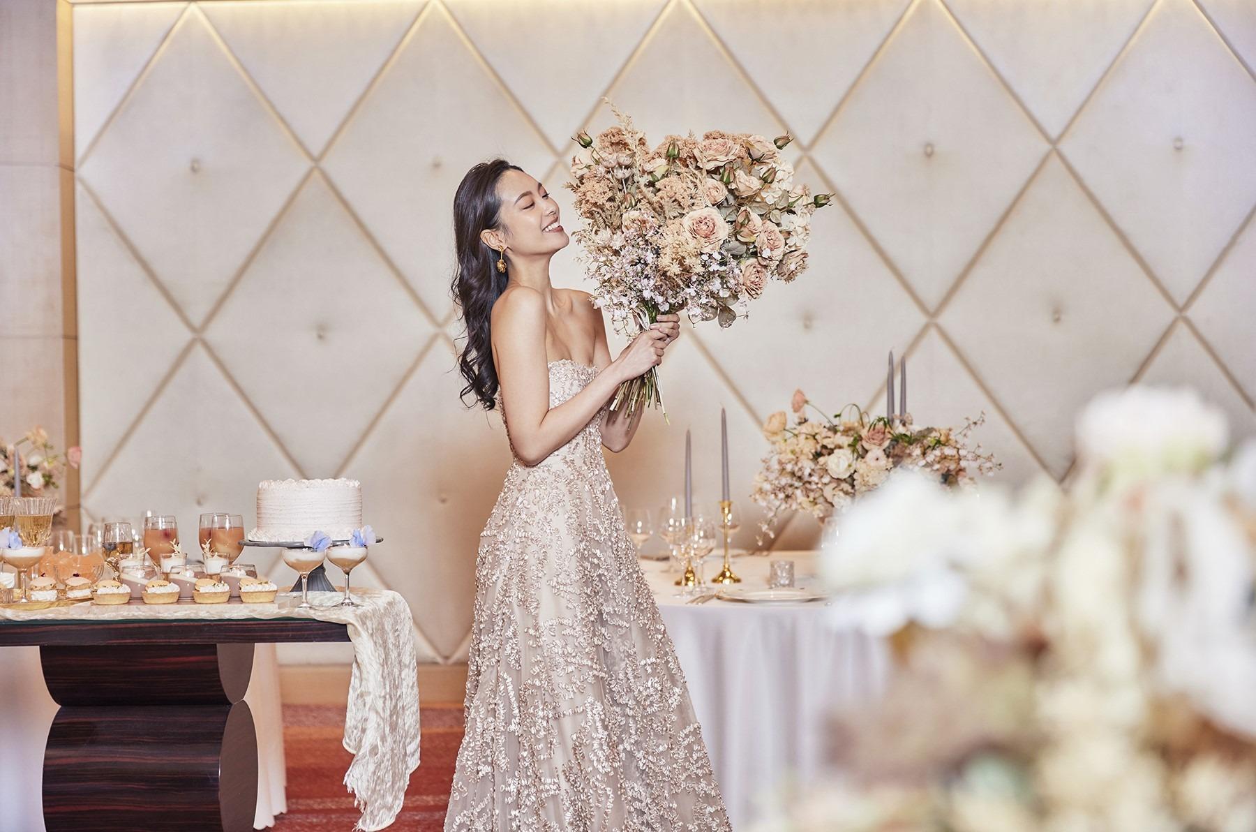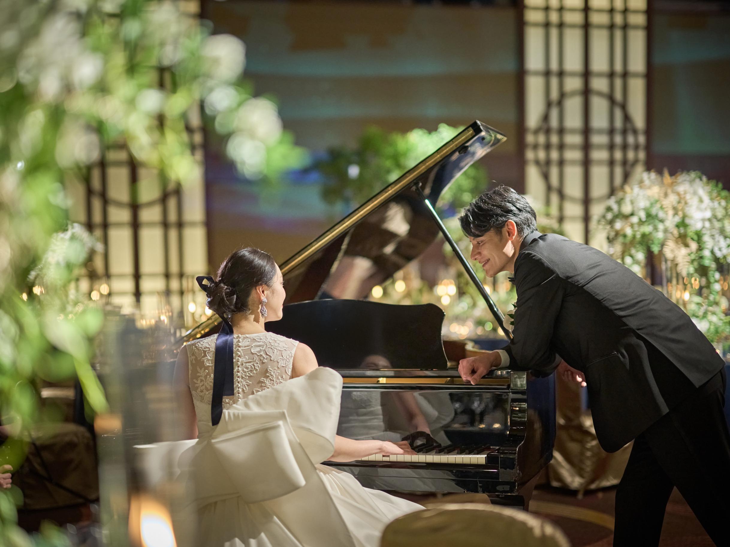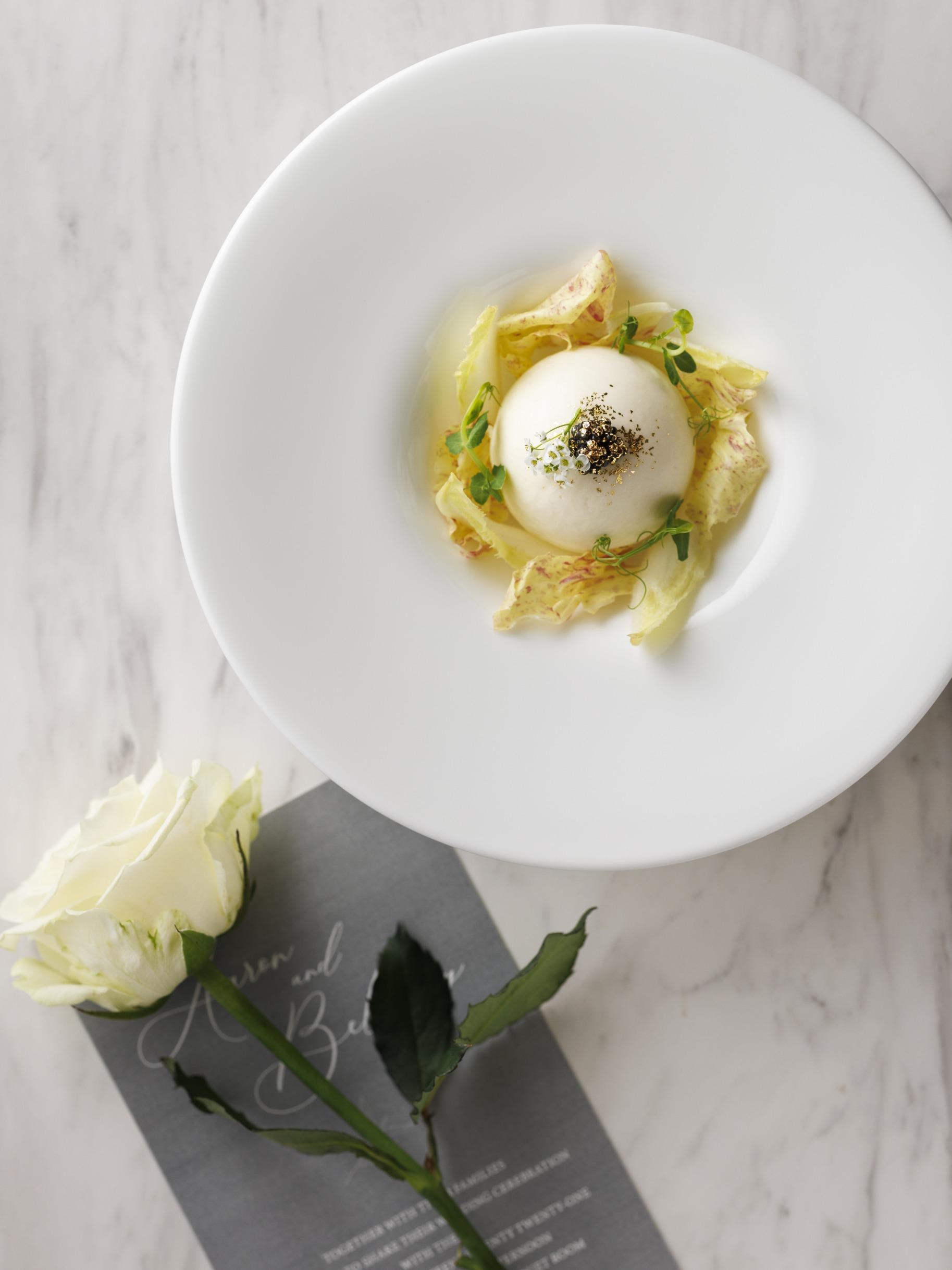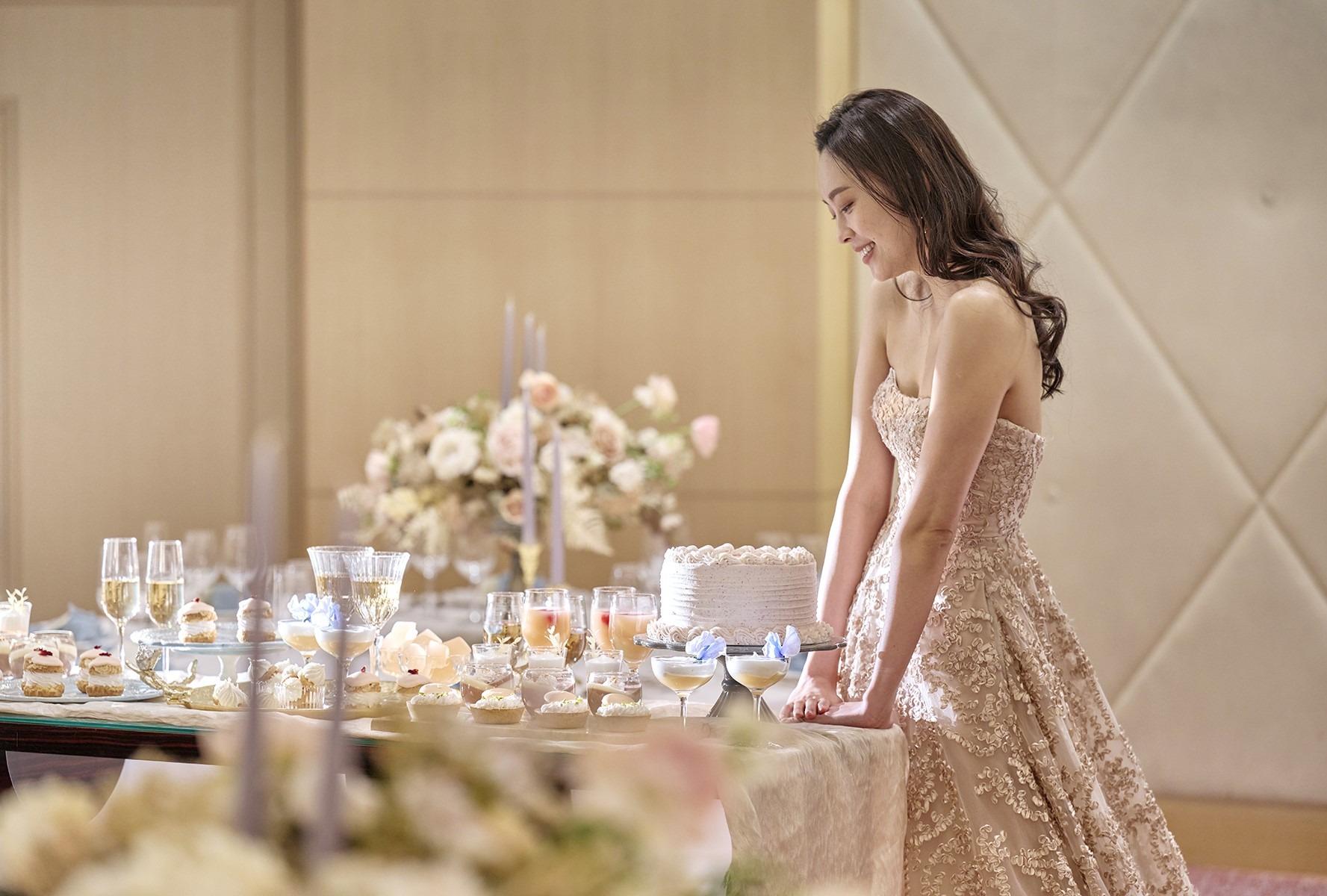 ふたりの祝宴に彩りを添える料理は、見た目にも美しく、 ゲストの記憶に刻まれる逸品揃い。 各テーブルを担当する専属スタッフが、 絶好のタイミングで出来立ての料理をサーブする