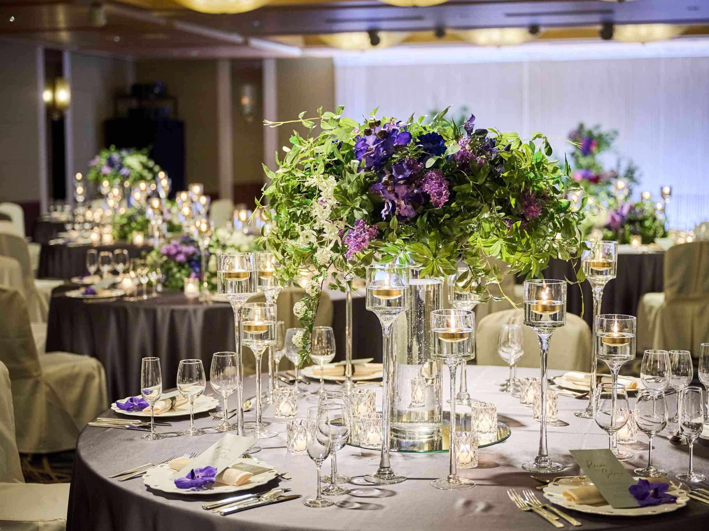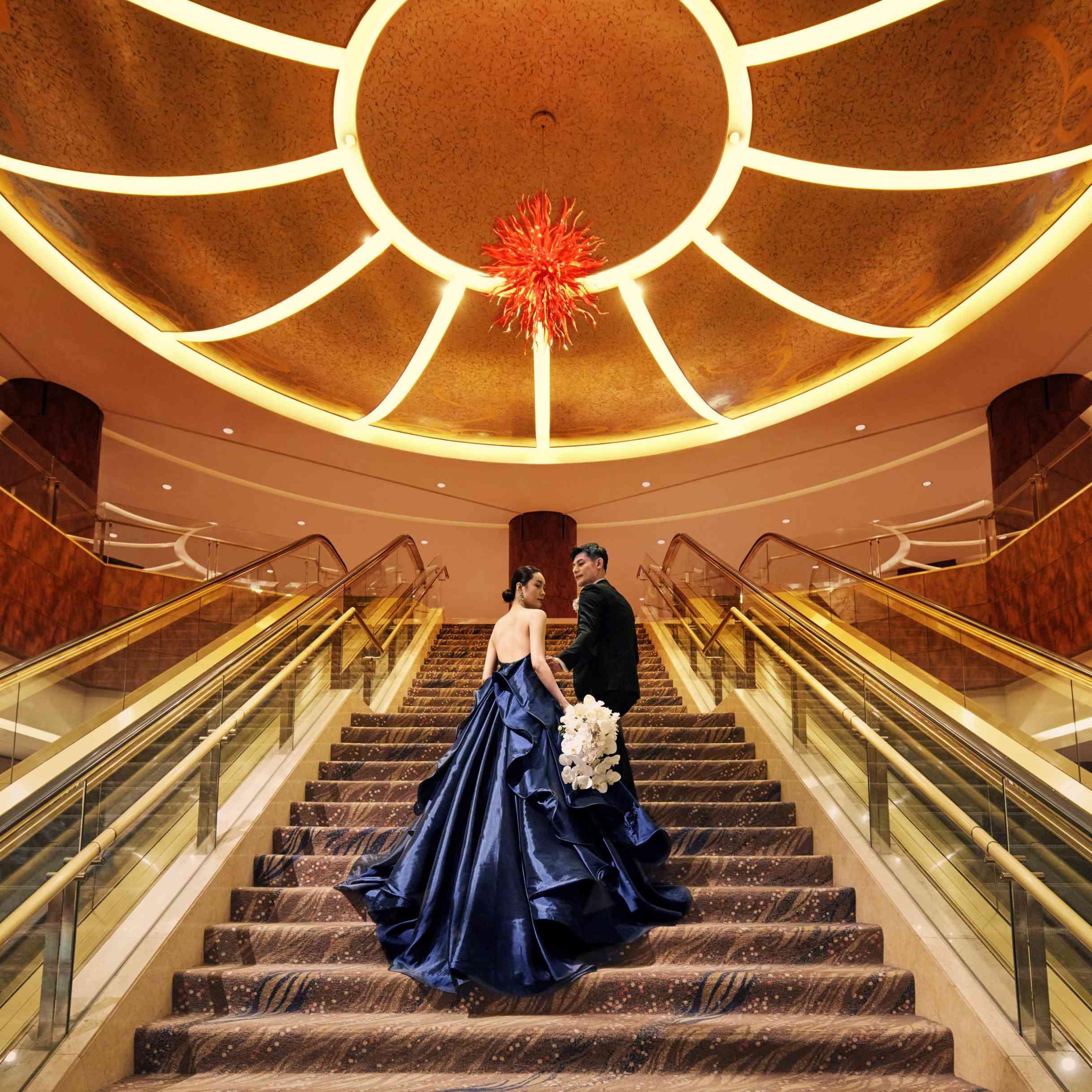 圧巻の世界観と開放感あふれるメインバンケット。 天井高7mの壮大なホテルウェディングが楽しめるボールルーム。 立食2,000名・着席800名まで収容可。