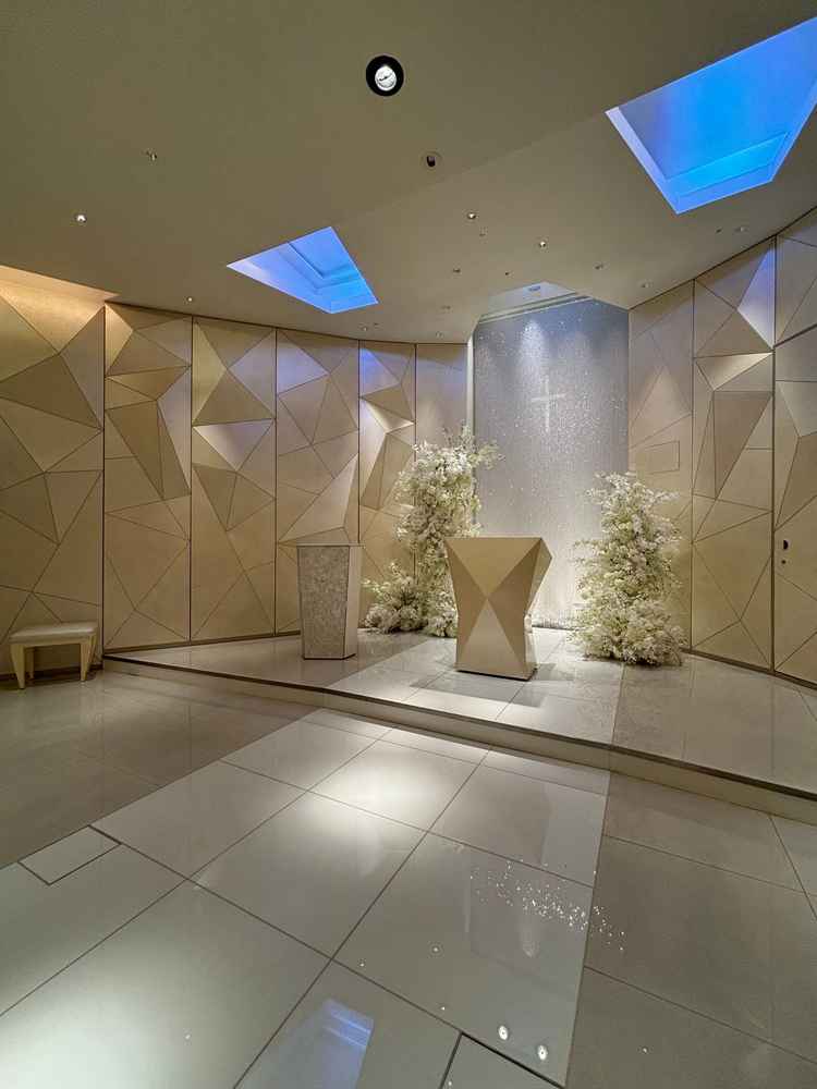 写真で見ていた通り、大人っぽいラグジュアリーな館内が好みでした。チャペルは写真で天井が低めなのが気がかりでしたが、実際に見ると白基調だからか圧迫感を感じることもなく気になりませんでした。円形のチャペルは珍しく、どの席のゲストからも新郎新婦が見やすいというのも良かったです。