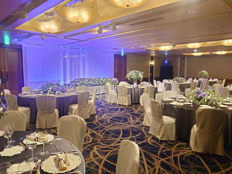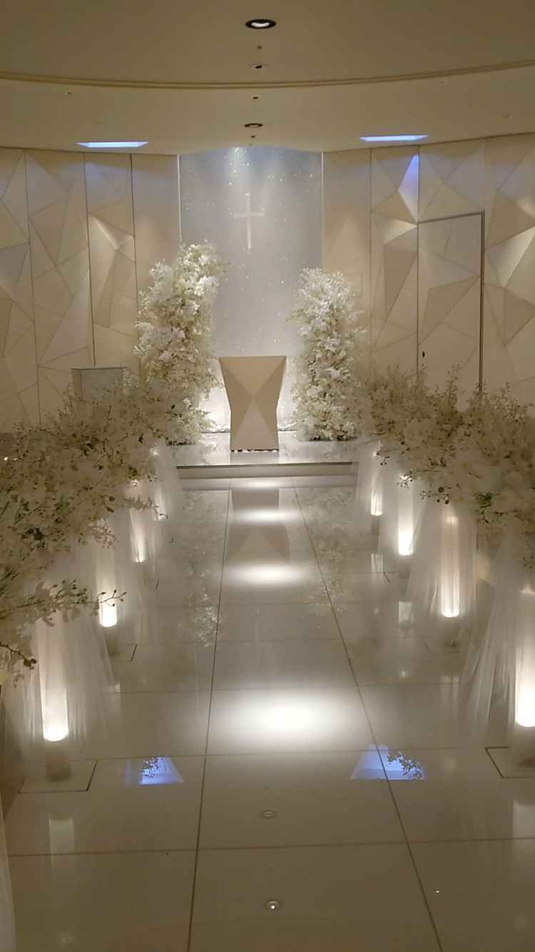 チャペルのプロジェクションマッピングや新婦が歩くとセンサーが感知してライトアップするバージンロードな演出などワクワク感のある会場でした。