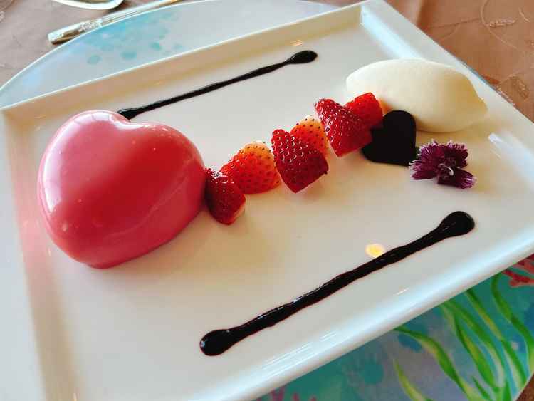 ハーフコース試食でしたがそれでも満足のいく量で、見た目だけでなく味も素晴らしいです。特に、デザートが可愛くて気に入りました。