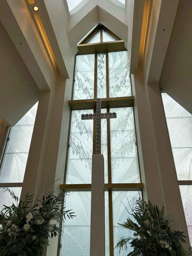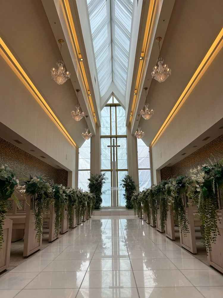 チャペルが、小さいと感じてしまった。 チャペル内は白を基調としていて、明るい雰囲気だった。天候には左右されない環境であった