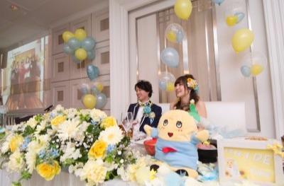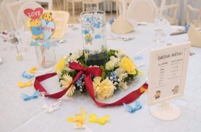 私たちが披露宴を行ったバンケット「ラプソディ」は、私が求めていた通りの“白を基調にしたナチュラル&シンプルなテイスト”で、それぞれの手作りアイテムがバッチリ映えましたね。いろいろなところに飾った大好きな“ゆるキャラ”が黄色×青色だったので、手作りアイテムも同じ色で揃えたことで会場全体に統一感が出せました。頑張って作ってよかったです。