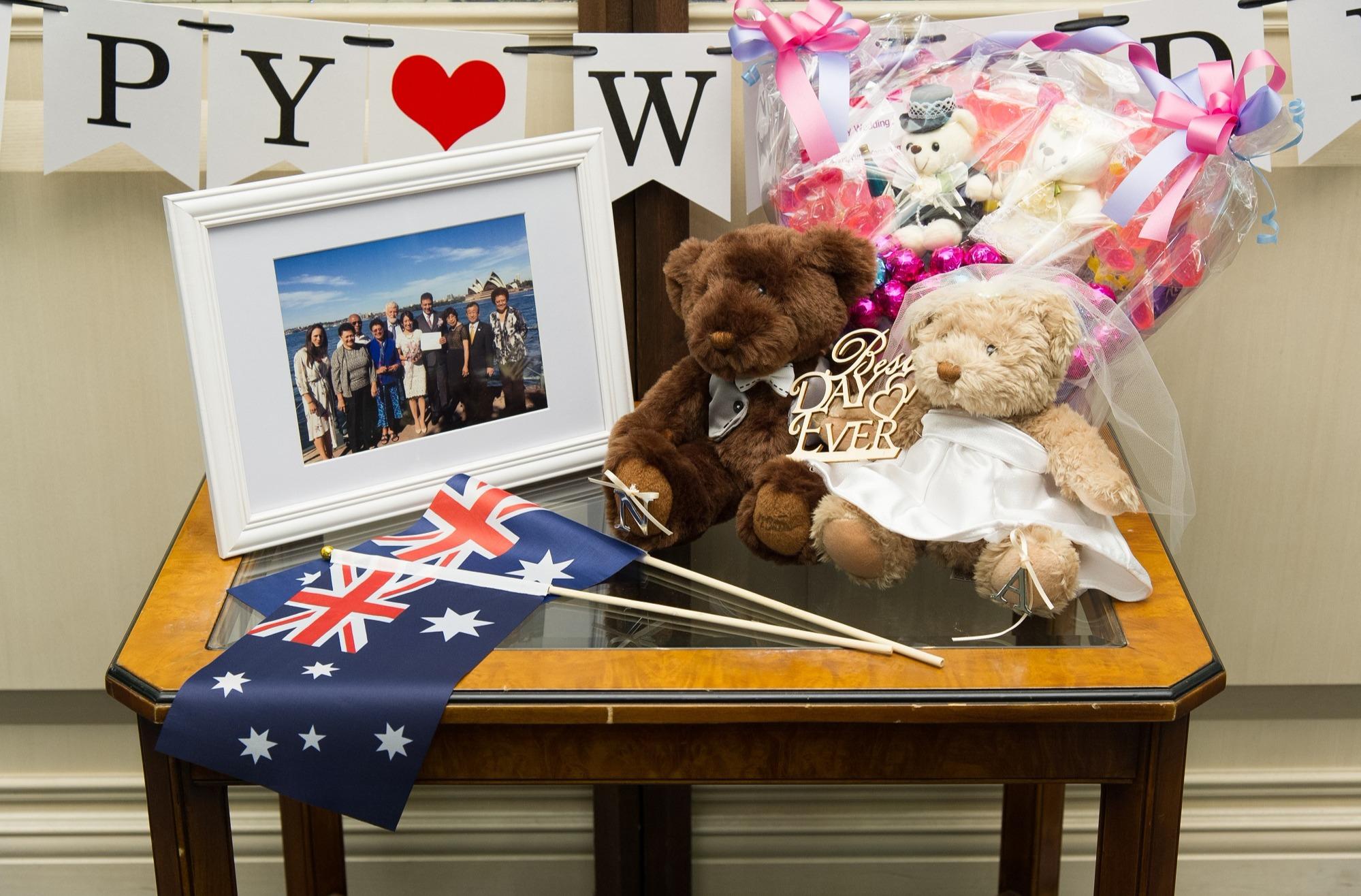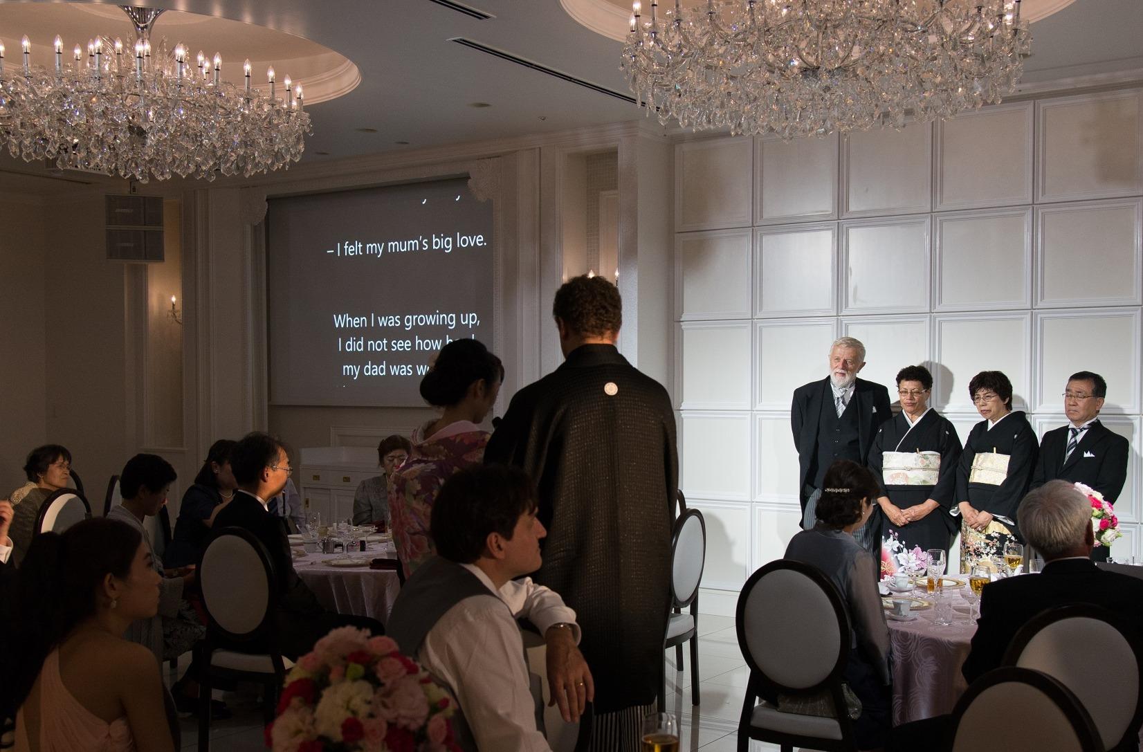 そう願うお二人のご披露宴では、友人の挨拶やご新婦様からのお手紙の日本語と英語のスライドショーを作ったり、オーストラリからいらっしゃったゲストの方のテーブルには日本のお土産を置いたりたくさんの工夫がされました!ご帰国される前から一生懸命ご準備されていたご新婦様の努力の賜物です。