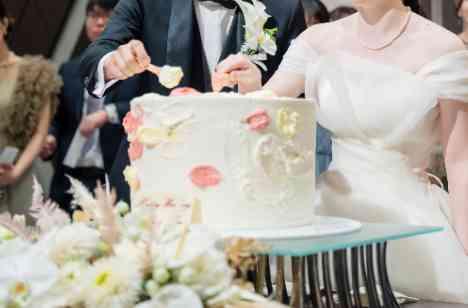 私達はゲストみんなを巻き込んだセレモニーをいくつかやりたいと考えていたので、挙式ではみんなにお花を詰めてもらうフラワーボックスの結婚証明書を、披露宴では真っ白なウェディングケーキをみんなで彩って完成させてもらうペイントケーキをセレモニーで行いました。みんなで作ってもらったケーキでファーストバイトを行うというセレモニーにしたため、私達ふたり的にはとても意味のあるファーストバイトになりました。