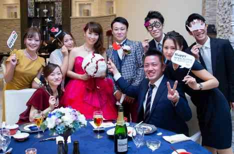 皆様一人一人とお話したいと考え各卓フォトラウンドを行いました。ただお写真を取るだけでなくポーズに困らないようにと手作りフォトプロップスもご用意されました。 ここでも野球を取り入れた野球ボール型ブーケ! ゲストの方もこれにはびっくり!!シンプルながらも個性を取り入れた可愛らしいブーケになりました。