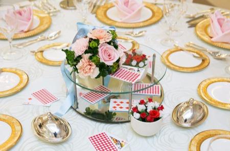 ゲストテーブルにもトランプをちりばめてアリスの世界観を再現していました♪ 披露宴は始まってしまうとあっという間に終わってしまいましたが ゲストの方が「良い式だったよ」「楽しかったよ」などと言ってくれて嬉しかったです!