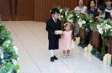 教会式でしたが、あまり堅い雰囲気にはしたくなかったので新婦の甥っ子姪っ子にリングボーイ&ガールを頼みました♪姪っ子は人見知りをして泣き出してしまい、最後は甥っ子が無事に祭壇迄リングピローを届けてくれました!ゲストのみんなが頑張れー、可愛いなどと笑ってくれて私たちの緊張も吹き飛んだのを覚えています!笑
