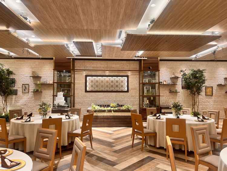 挙式会場はシンプルでしたが、披露宴会場がとても新しく、デザインもとてもオシャレでした。天井の装飾が凝っていて、どこを撮っても写真映えしそうでした。