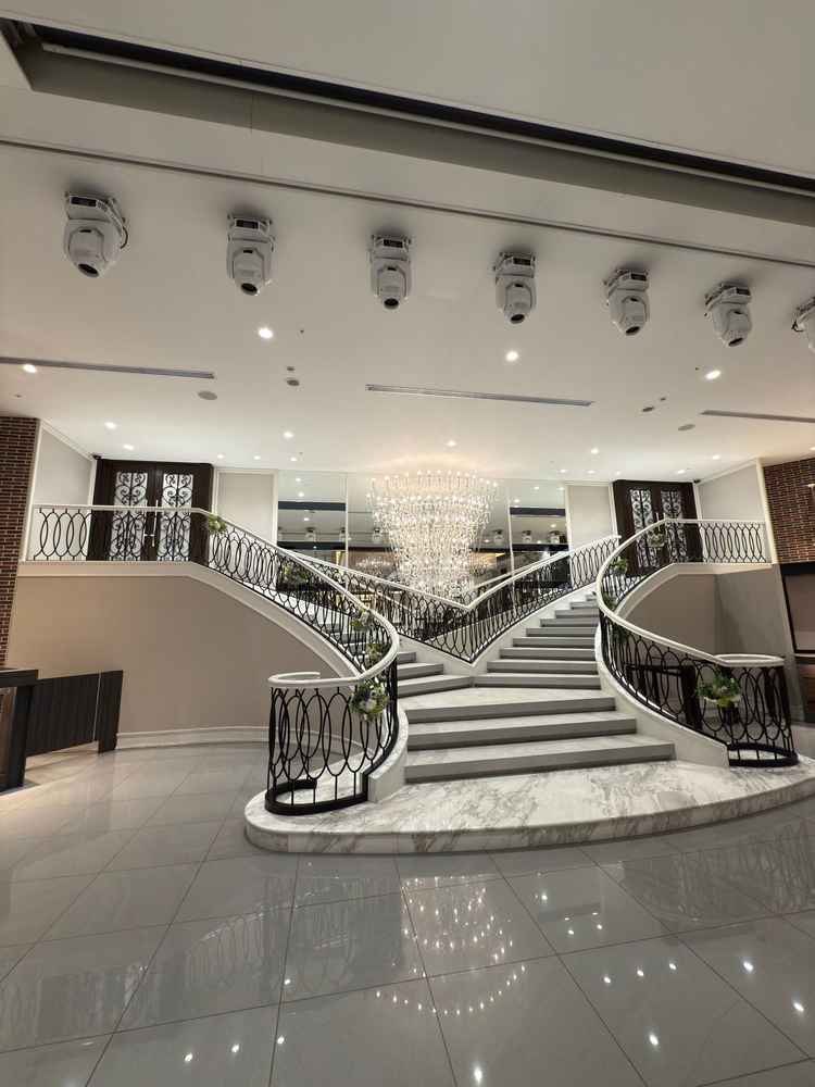 ・披露宴会場について、リニューアル会場含めた二つの会場の天井が高く開放的で、煌びやかな内装も相まって非常に好印象だった。