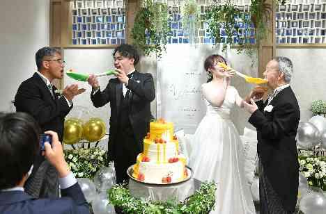 披露宴では、お父様の懐の広さと偉大さを表現した特大スプーンでサンクスバイトを。ご新婦様のお色直し退場シーンでは、ご新郎様の弟様3人にエスコート役をリクエスト!感謝の想いを伝える演出を随所に盛り込んだ、心温まるパーティとなりました。終盤には誰よりも結婚式を楽しみにしていたご新婦様へ、ご新郎様よりサプライズで花束をプレゼント!謝辞では、ご新郎様から両親へ手紙の朗読も。