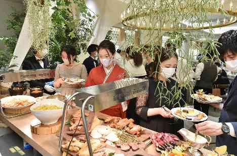 あたたかなフード演出に、おいしい笑顔が広がります。一人ひとり専用のマイトングをご用意。密を回避し、各卓ごとにブッフェテーブルへご案内。徹底した感染対策を施して、安心安全に愉しんでもらえました。自分の両親へ“今までありがとう”、相手の両親へ“これからよろしくお願いします”。家族と一緒に創り上げたスペシャルなひと時に、ありのままの想いをたっぷり詰め込みました。
