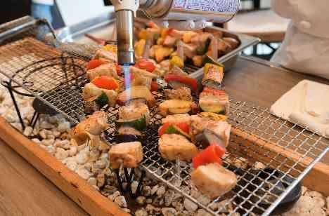 おふたりが会場見学の時から、とても楽しみにしてくださっていたグリルビュッフェ。 ゲストには大好評で、とても楽しんでくださっている様子が印象的でした。BBQやパエリアなどのおもてなしをホワイエスペースにご用意。シェフが目の前で焼き上げてくれるパフォーマンスは会話のきっかけにもなり、行列ができるほどの賑わいでした!