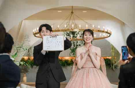 テーブル対抗で、どのテーブルの皆様がおふたりの似顔絵が上手に描けるか、おふたりが悩みに悩んで優勝テーブルを決定!選んでくださったテーブルの皆様に景品のプレゼントがありました!アットホームに過ごせるからこそ、近い距離で楽しめるようなお時間をみなさまとお過ごしいただけて、会場にいる皆様が楽しめるようなシーンになります!